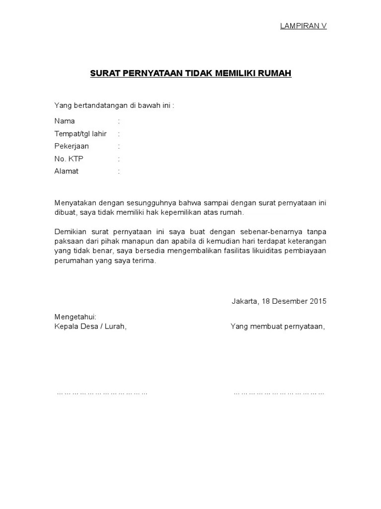 Contoh Surat Pernyataan Siswa Baru / Form Surat Pernyataan (Belum Memiliki Rumah) : Yang bertanda tangan di bawah ini :.